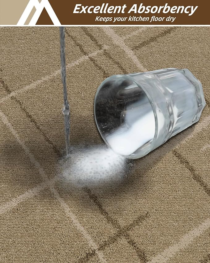 - 【Super Absorbent & Durable】Made of high-quality Polyester, this kitchen rug quickly absorbs spills, oil, and dirt, keeping your floors dry and clean. The sturdy material ensures long-lasting use even in high-traffic areas. Ideal for kitchens, sinks, and entryways.