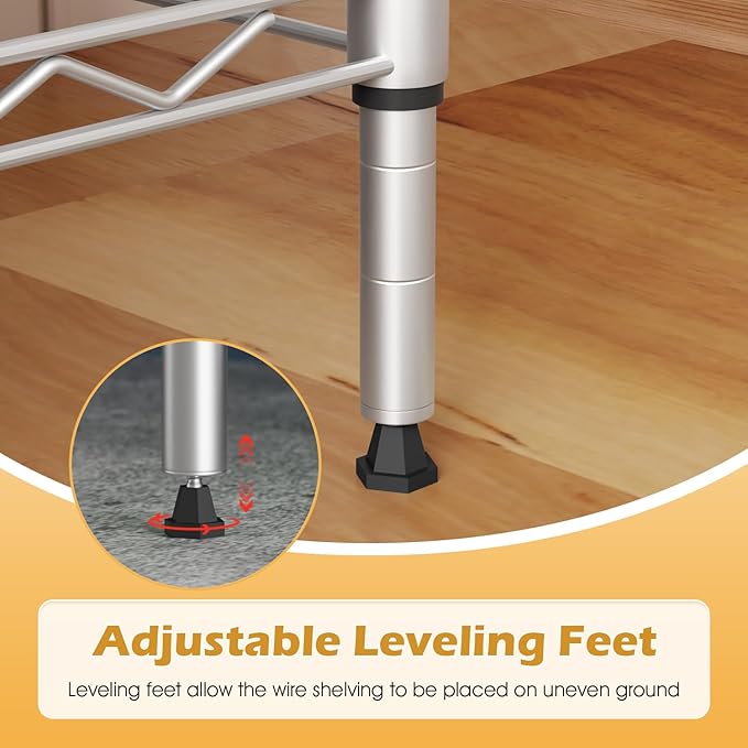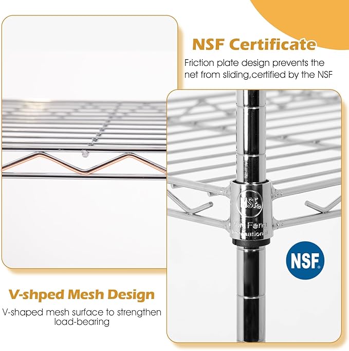 - Durable & High-Quality Construction:This wire shelving unit is long-lasting and made of high-quality steel.NSF-certified for performance and safety in commercial, garage, pantry, and residential environments, and resistant to rust.