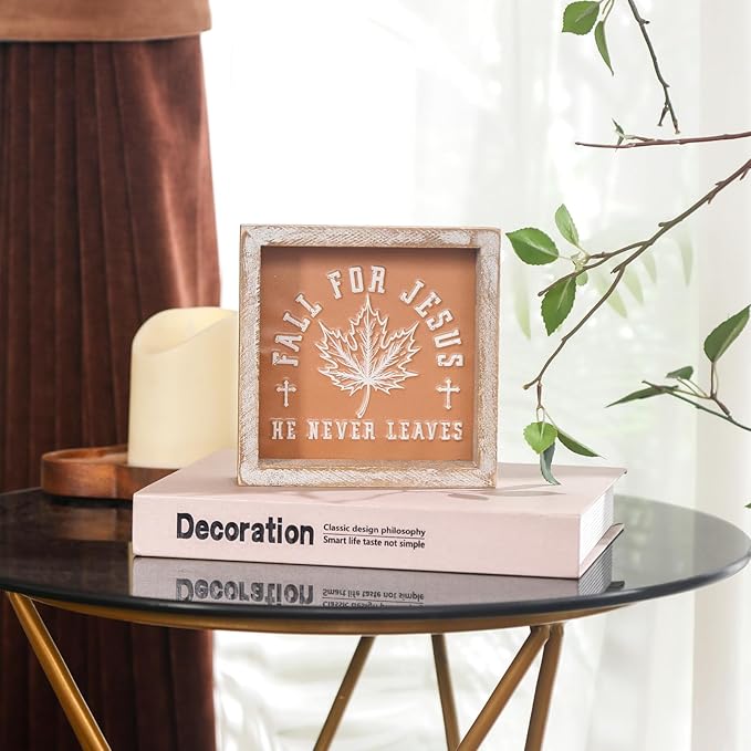 - Inspiring Faith Design: Embossed with uplifting words Fall for Jesus, He Never Leaves, complemented by elegant maple leaf and cross motifs, adding spiritual warmth to your decor.