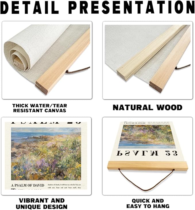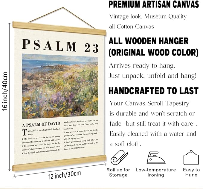 Christian Canvas Poster, Psalm 23 Canvas Poster Wood Hanger, The Lord Is My Shepherd Christian Wall Art, Bible Verse Posters, William Morris Prints Decor, Home Decor Accent