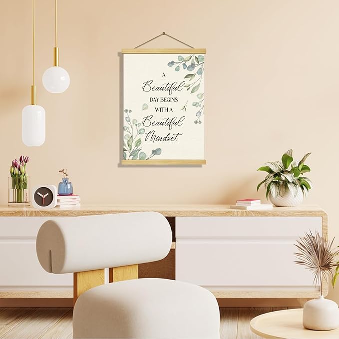 Inspirational Canvas Poster, Canvas Poster Wood Hanger, Minimalist Eucalyptus Wall Decor, Quotes Wall Decor, Positive Mindset Posters, Home Office Decors, Encouragement Gift for Women Men Friends