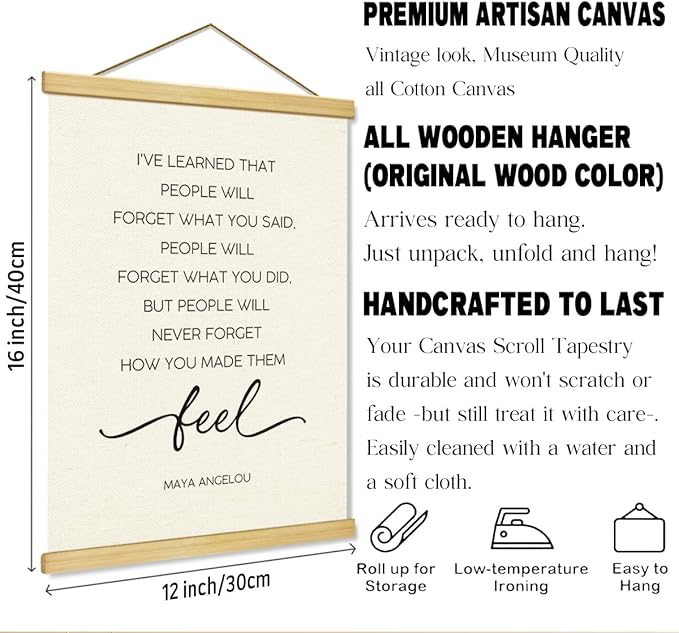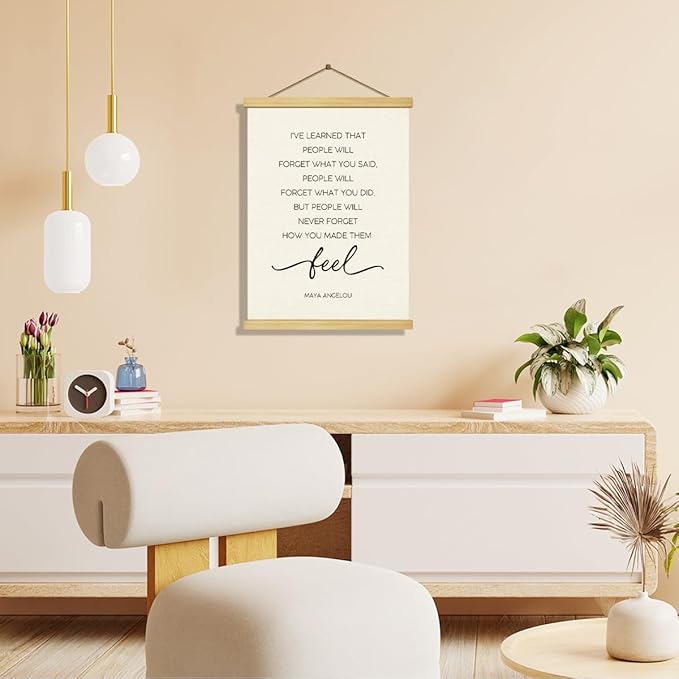 Inspirational Canvas Poster, I've Learned That People Will Never Forget How You Made Them Feel Canvas Posters Wood Hanger, Positive Mindset Poster, Positive Home Decor, Bedroom Wall Art