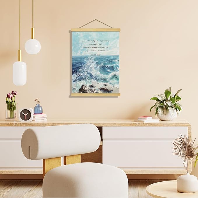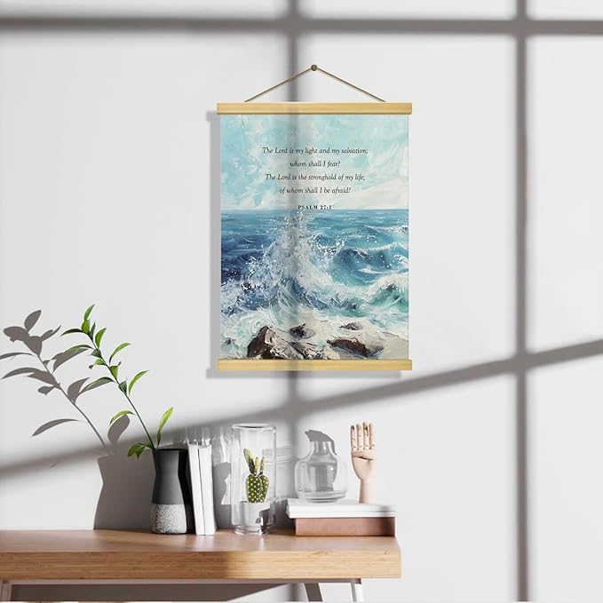 Christian Canvas Poster, Psalm 27:1 Canvas Poster Wood Hanger, Christian Wall Art, Bible Verse Posters, William Morris Prints Decor, Ocean Watercolor Decors, Home Decor Accent