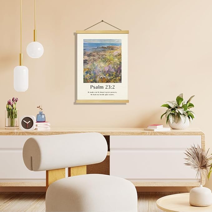 Vintage Christian Canvas Poster, Psalm 23:2 Canvas Poster Wood Hanger, Christians Wall Art, Bible Verse Posters, Modern Canvass Posters Decors, Home Decor Accent, Christian Gift