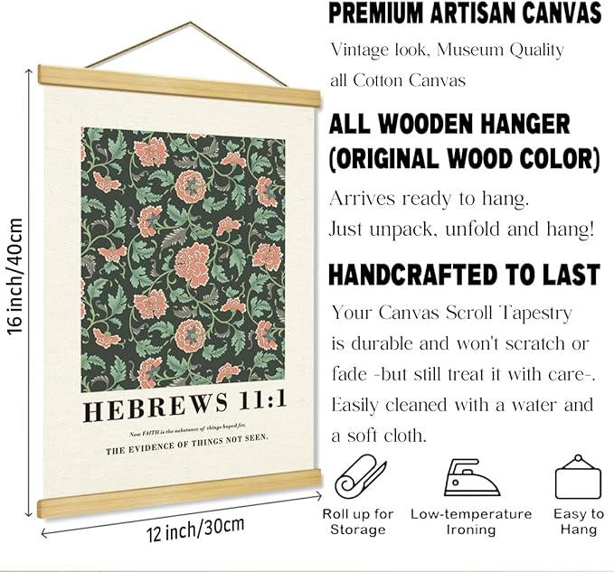Christian Canvas Poster, Hebrews 11:1 Canvas Poster Wood Hanger, Christian Wall Art, Bible Verse Posters, William Morris Prints Decor, Modern Canvass Posters Decors, Home Decor Accent