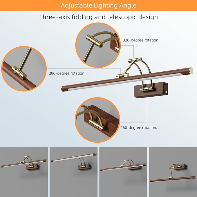 - Adjustable Light Direction: The lamp head can be 180° rotatable, combined with 180° spinning swing arm, the battery picture light disperses the light wherever you want, it's a perfect lighting solution for your artwork or family portrait wall.