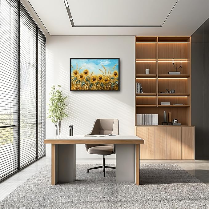 Olivine Large Wall Art, Sunflower Pictures Wall Decor, Sunflower Wheat Painting, Nature Landscape Canvas Prints, Framed Artwork for Living Room Bedroom Bathroom Office Home Decoration 36"x24"