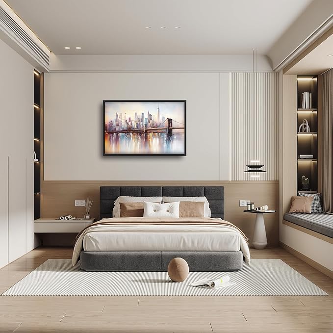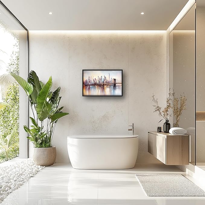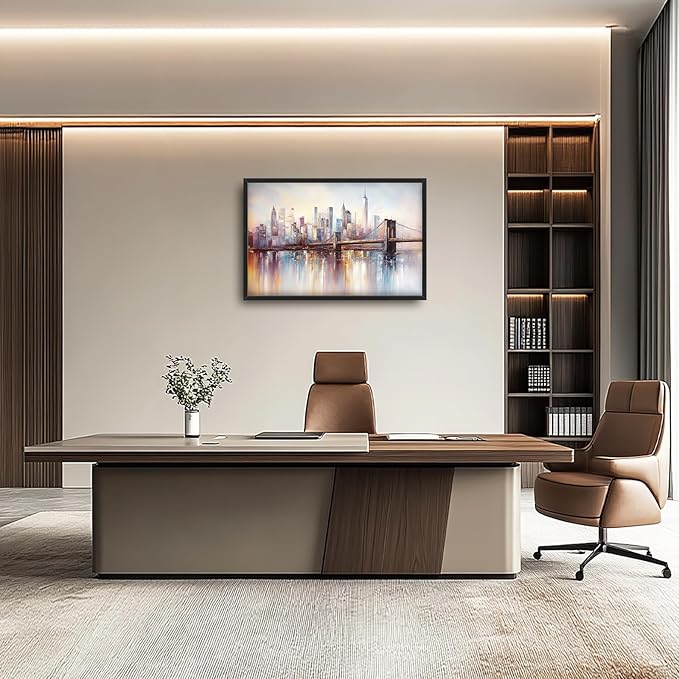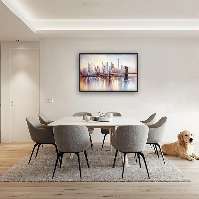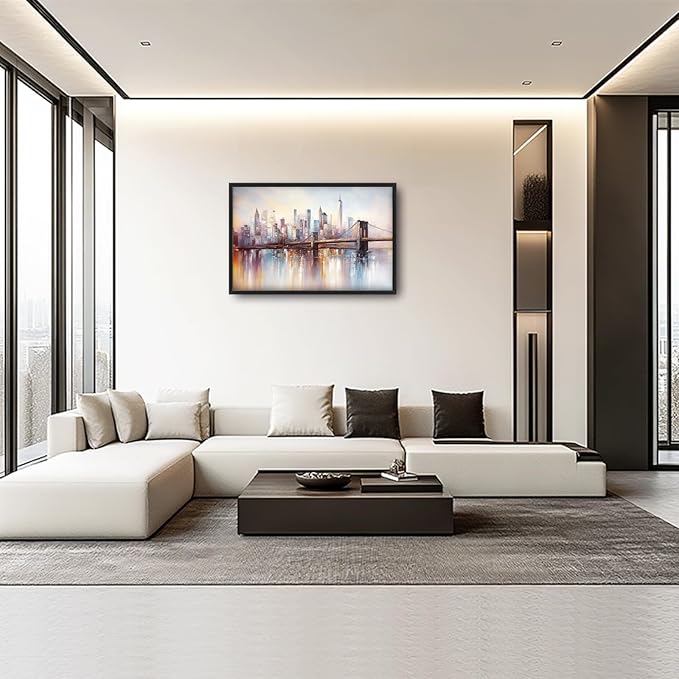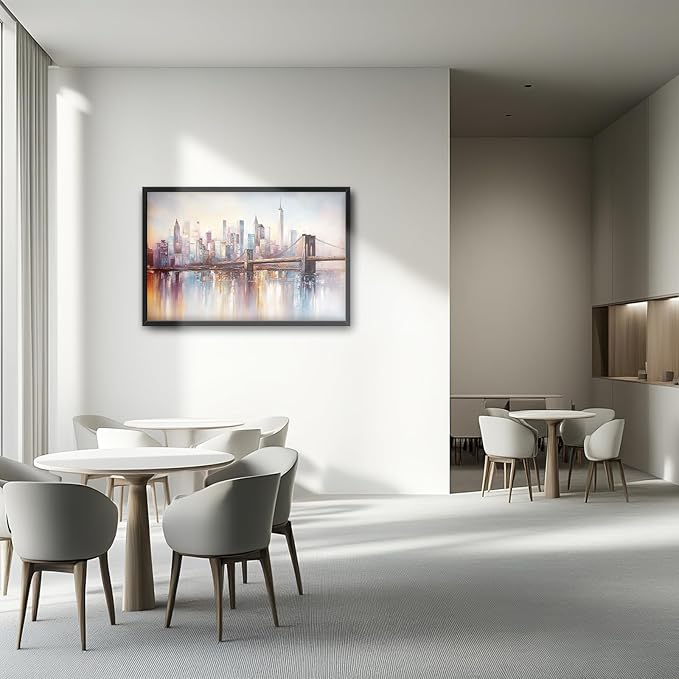 Olivine Large Wall Art, Brooklyn Bridge Pictures Wall Decor, New York Cityscape Canvas Prints Painting, Framed Artwork for Bathroom Bedroom Living Room Office Home Decoration 36"x24"
