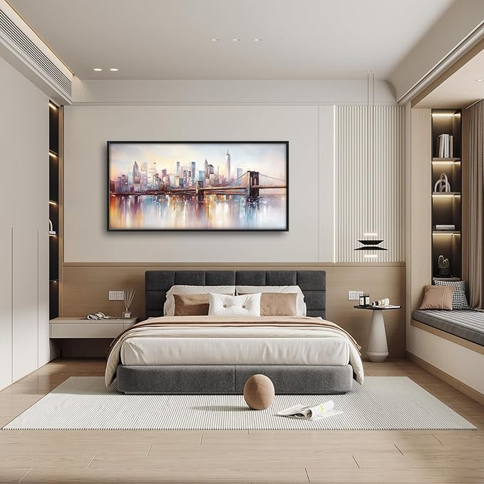 Olivine Large Wall Art, Brooklyn Bridge Pictures Wall Decor, New York Cityscape Canvas Prints Painting, Framed Artwork for Bathroom Bedroom Living Room Office Home Decoration 60"x30"