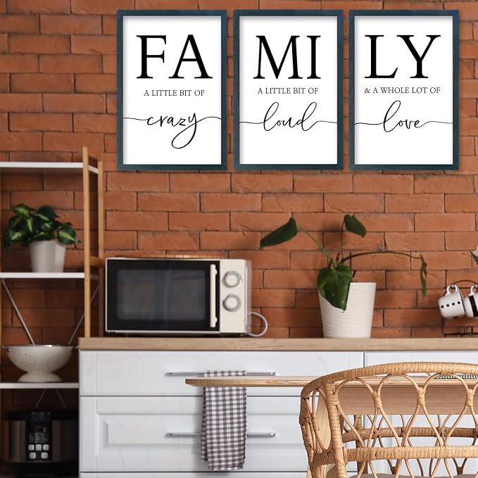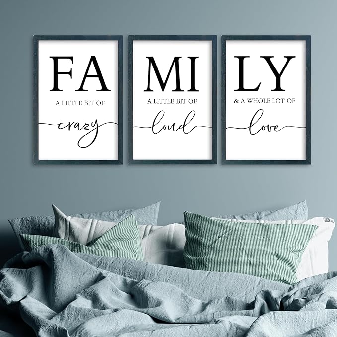 SRSZHIYUE Family Wall Art A Little Bit Of Crazy Loud Sign Wall Decor Art Set of 3 16"×11" Prints Wood Framed for Large Rustic Farmhouse Minimalist Living Room Entryway Wall Hanging (Black)
