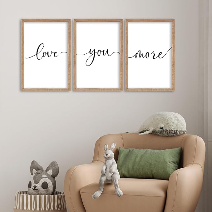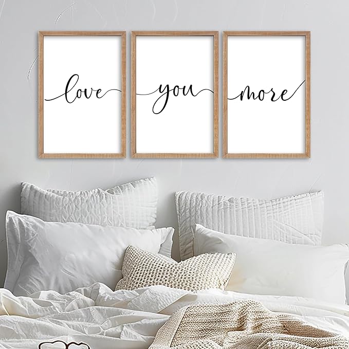 SRSZHIYUE Love You More Bedroom Set of 3 Wall Decor Sign 16"×11" Small Framed Wood Modern Above Over Bed Couples Romantic Art for Master Bedroom Wall Horizontal Hanging Decoration (Wood)