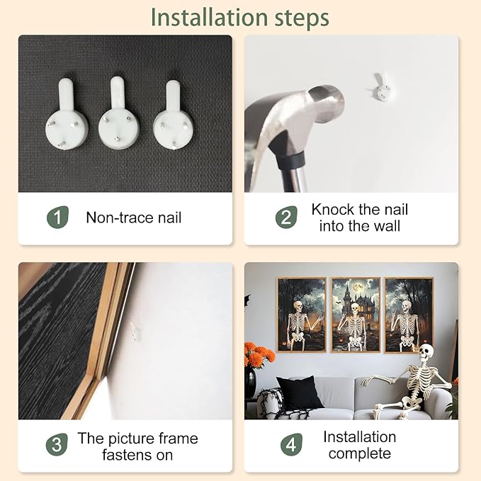 - IDEAL FOR HAUNTED HOME DECOR: The spine-chilling set of skeleton-themed wall art is the perfect choice for enhancing the decor of your living room, bedroom, office, or any space that could use a touch of the macabre. It also makes a great gift for friends and family who love all things spooky and supernatural.