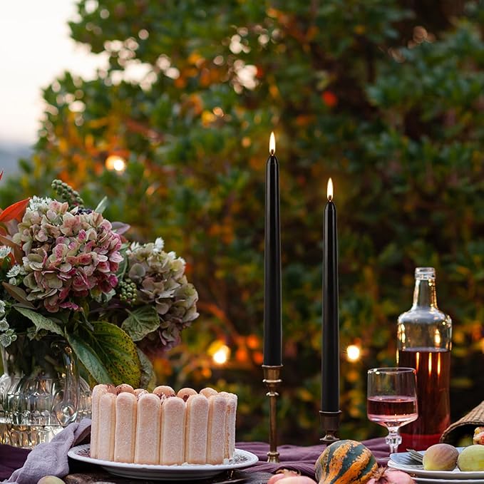 24 Pack Black Taper Candles, 7-8 Hours Burn Time, Unscented, Smokeless and Dripless, 10 Inch Dinner Candle Set for Household, Wedding, Party and Home Décor Candlesticks.