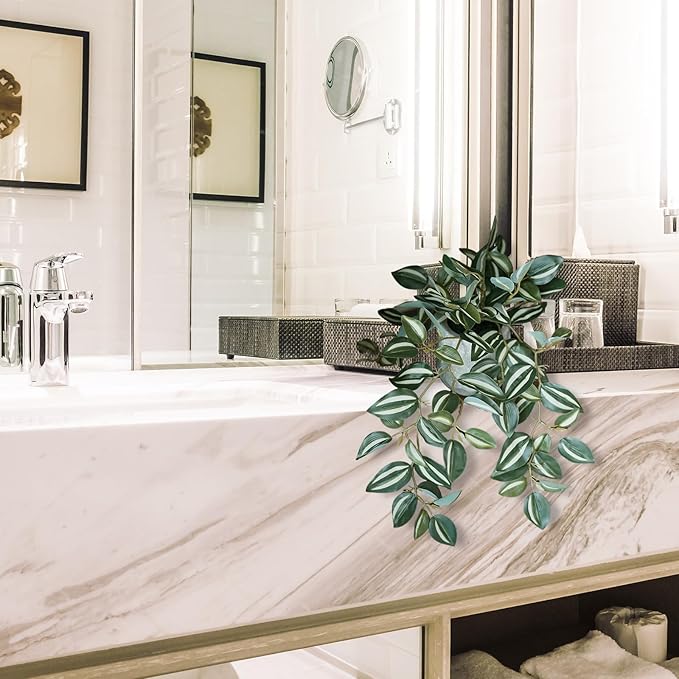 Artificial Potted Plants Indoor - Small Fake Hanging Plants for Bathroom, Home, Office Desk Decor - Low Maintenance UV Resistant Greenery for Shelf, Indoor & Outdoor Use - Realistic Faux Plants