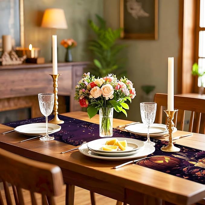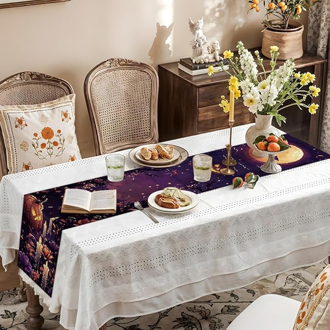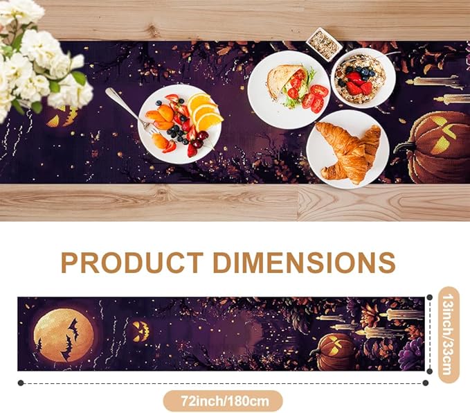 ANNA QUEEN Candle Pumpkin HalloweenTable Runner 13 x 72 Inch for Dining Table, Table Runner for Halloween Holiday Dining Decor Indoor Outdoor Party Home Table Decoration