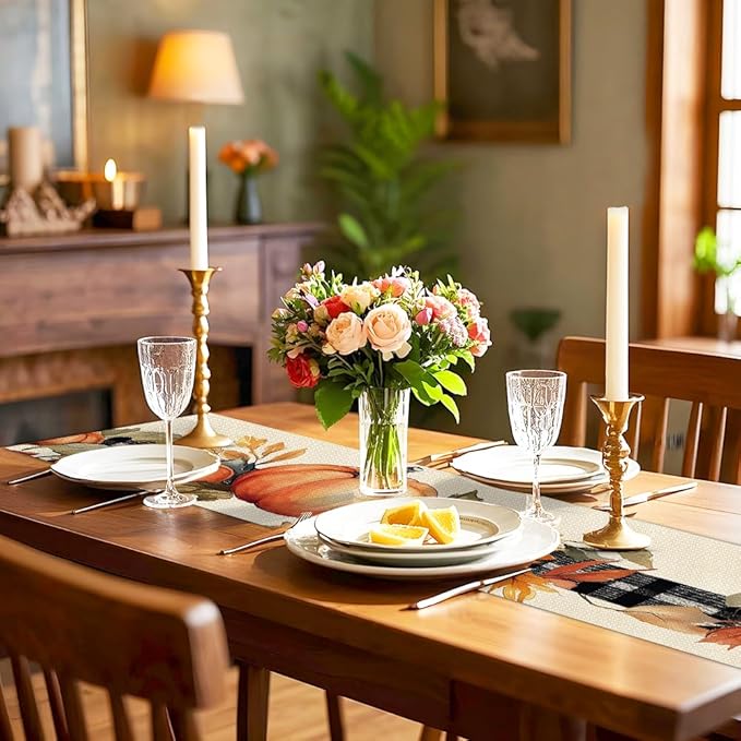 ANNA QUEEN Pumpkin Sunflower Table Runner 13 x 72 Inch for Dining Table, Table Runner for Seasonal Autumn Kitchen Dining Table Decoration for Home Party Decor Thanksgiving Harvest
