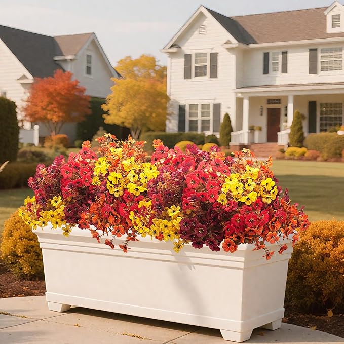 16 Bundles Artificial Fall Flowers Outdoor UV Resistant, Faux Greenery for Hanging Planters & Window Box - No Fade Thanksgiving Christmas Decor, Garden Porch Wedding (Mixed Colors)