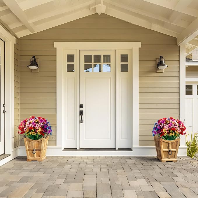 - 【 Happy mood 】These fake outdoor flowers bring the beauty of nature into your life. These flowers have lush green leaves and bright colors, making people feel happier and their lives more exciting