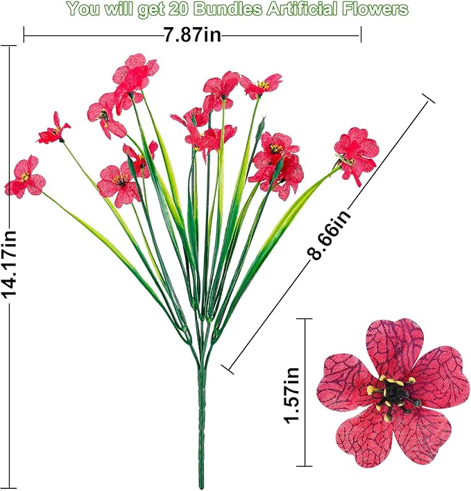 20 Bundles Artificial Flowers for Outdoors or Indoor Garden Home Decoration,No Fade Fake Flowers Faux Plants for Decoration Hanging Planters,Porch Window Box Garden Wedding Farmhouse Fake Plants
