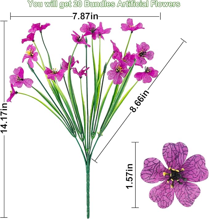 20 Bundles Artificial Flowers for Outdoors or Indoor Garden Home Decoration,No Fade Fake Flowers Faux Plants for Decoration Hanging Planters,Porch Window Box Garden Wedding Farmhouse Fake Plants