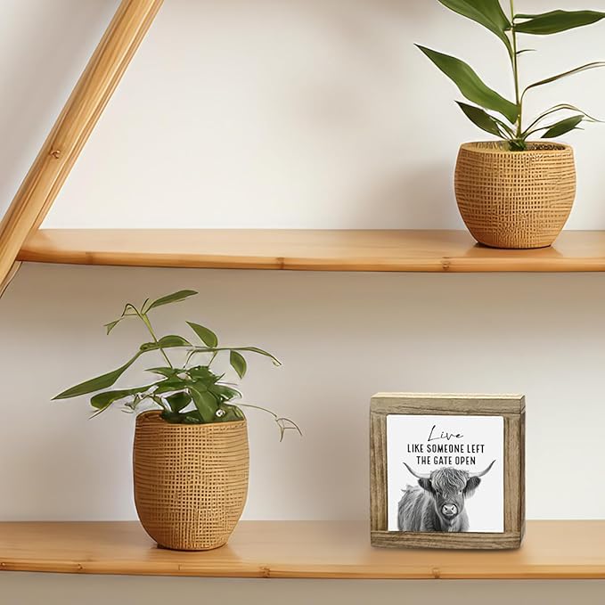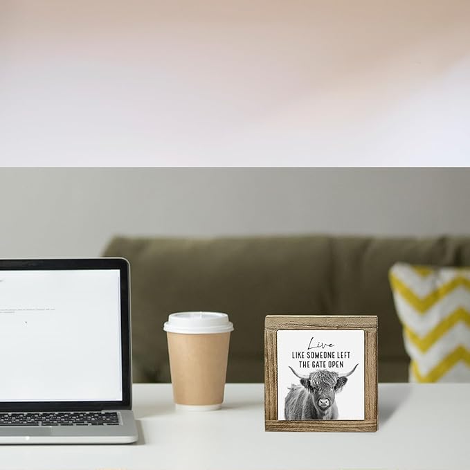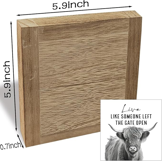 Vintage Decor, Funny Cows Wood Sign, Rustic Farmhouse Home, Decorative Signs - Live Like Someone Left The Gate Open, Tabletop Decor and Gift for Cow Lovers 5.9×5.9×0.7inch