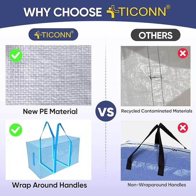 - Heavy-Duty: Made with premium PE material with wide and thick carrying handles surround the luggage/bag, giving the moving bags much more strength to hold heavier loading than stitched handles