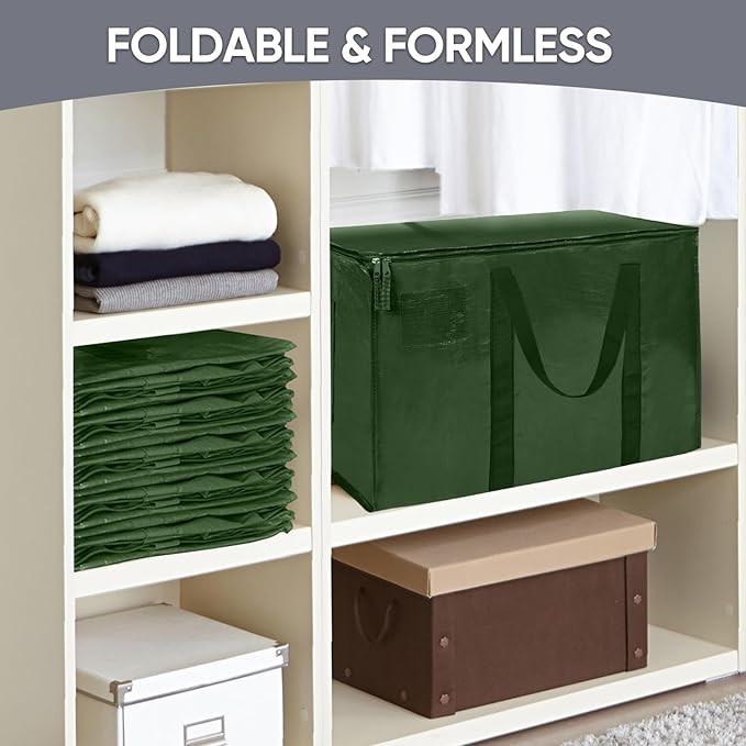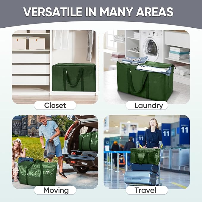 TICONN 6 Pack Extra Large Moving Bags with Zippers & Carrying Handles, Heavy-Duty Storage Tote Moving Boxes for Space Saving (6 Pack, Olive)