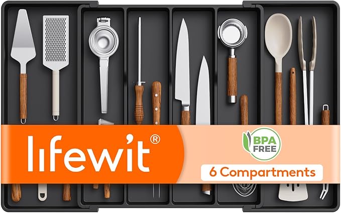 - Thoughtful Design: Unique groove design for easy access to cutlery; The buckle design ensures smooth sliding and effortless adjustment, preventing partition displacement. Lifewit utensil holders bring seamless order to your kitchen!