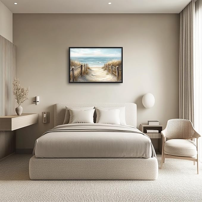 Olivine Beach Large Wall Art, Coastal Seascape Pictures Wall Decor, Nautical Paintings, Sea Canvas Prints, Framed Artwork for Dining Room Bedroom Living Room Office Bathroom Home Decoration 36"x24"