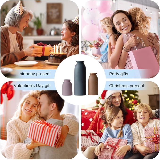 - [Timeless Farmhouse Style, Modern Color Palette] Enhance your home with this set of 3 ceramic vases in a sophisticated. The rustic matte glaze and classic silhouette effortlessly complement farmhouse, modern, and boho interiors—making any space feel warm and inviting.