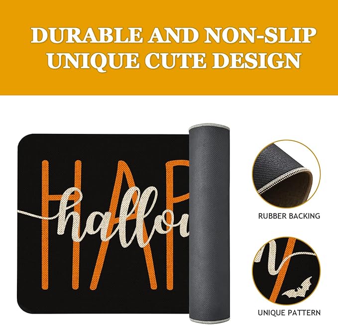 - High quality material: The happy halloween welcome door mat is made of high quality linen, tear-resistant, soft, thick, stain-resistant, shrink-proof easy to air dry, protect your floors from moisture, stains and scratches.