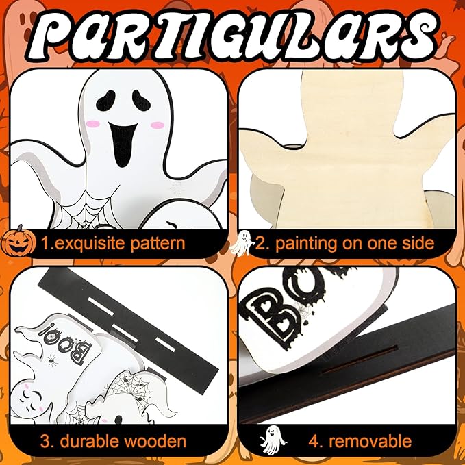 - Durable Material with Polished Surface and Glitter: made from durable wood, our wooden Halloween ghost centerpiece is built to last; The polished surface and some glitter material give it a beautiful and eye catching finish, adding a touch of bright to your decor; It is painted and smooth, can be applied for many years