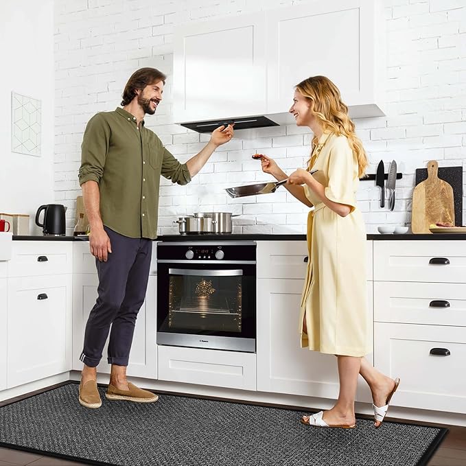 GOYLSER Kitchen Mats for Floor Non Skid, Jute Long Hallway Runner Rugs Laundry Rug, Absorbent Fall Kitchen Rug Kitchen Sink Floor Mat, Black