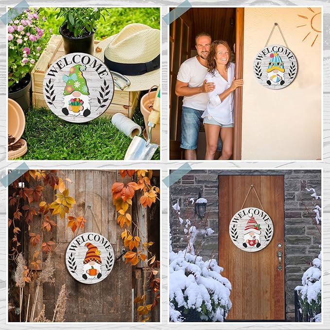 - Material and Size: the Interchangeable winter wooden Gnome decors are made of wooden material, strong and reusable, safe and reliable, light and portable; The wall hanging sign is about 12 x 12 inches/ 30 x 30 cm, the size of the hat is about 4.05 x 3.62 inches