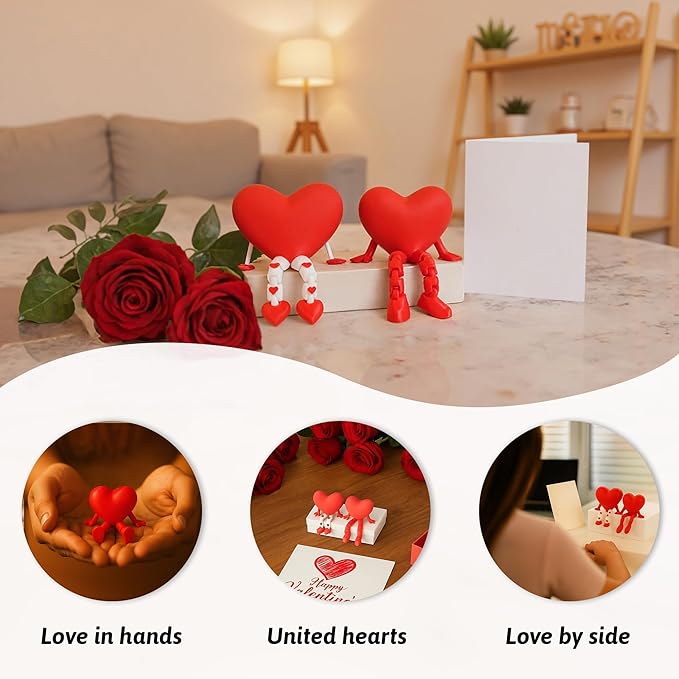 Heart Desk Figurine Set – Cute Love-Inspired Decor with Movable Legs & Hands – Perfect for Office, Home, or Gift for Lovers, Best Friends, and Special Occasions