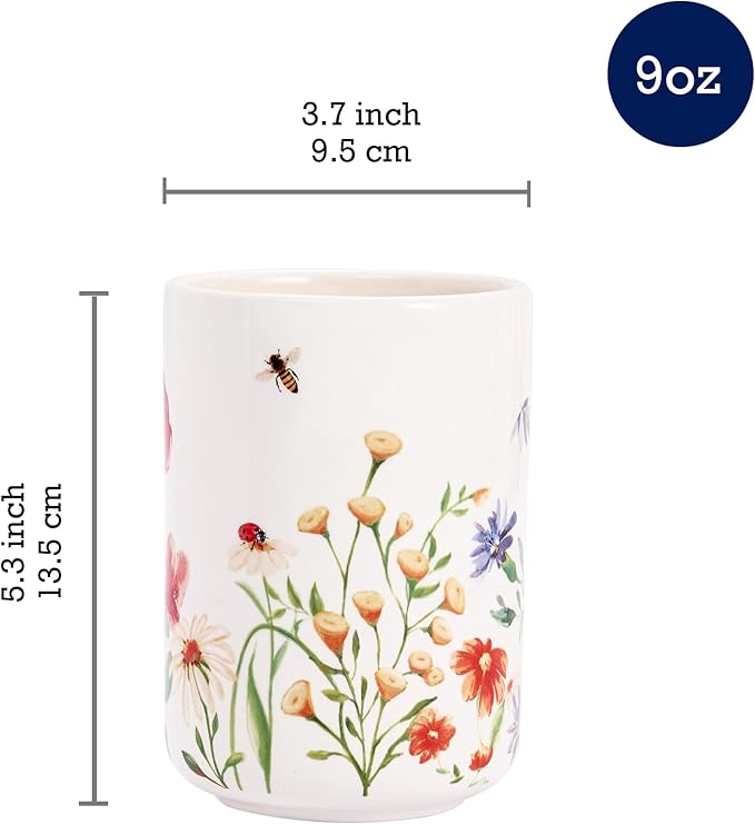 Bico Summer Provence Ceramic Utensil Holder Set of 2, Ceramic Kitchen Utensil Crocks for Countertop, Large Cooking Tool Holder Counter Decor, Spatula Organizer