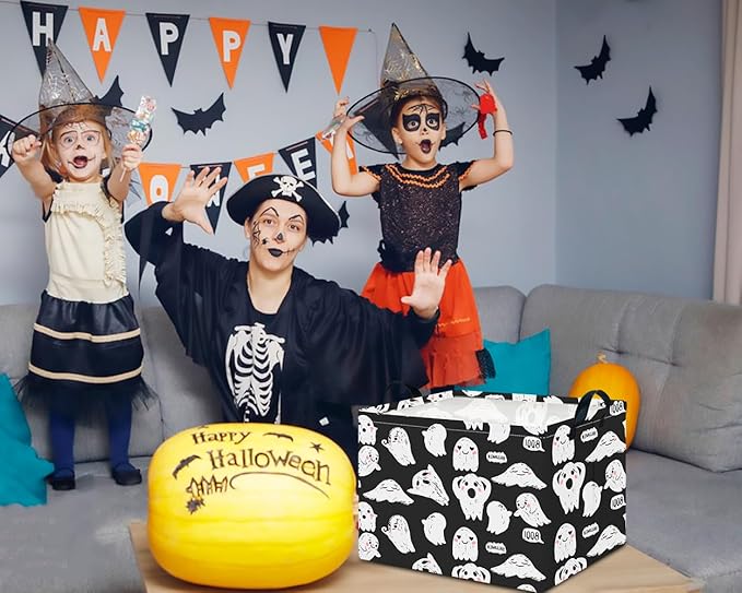 CLOCOR Rectangular Storage Basket Empty, Gift Basket for Halloween, Waterproof Storage Bin with Handles, Room Decor(Crack Ghost)