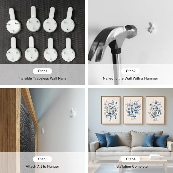 - [Perfect Decoration] This vintage blue floral wall decor is high definition and simple tones. Whether you want to decor living room, bedroom, bathroom, dining room, hallway, kitchen, hotel or office,guest room, this wall decor will integrate effortlessly, enhancing any area you can envision.