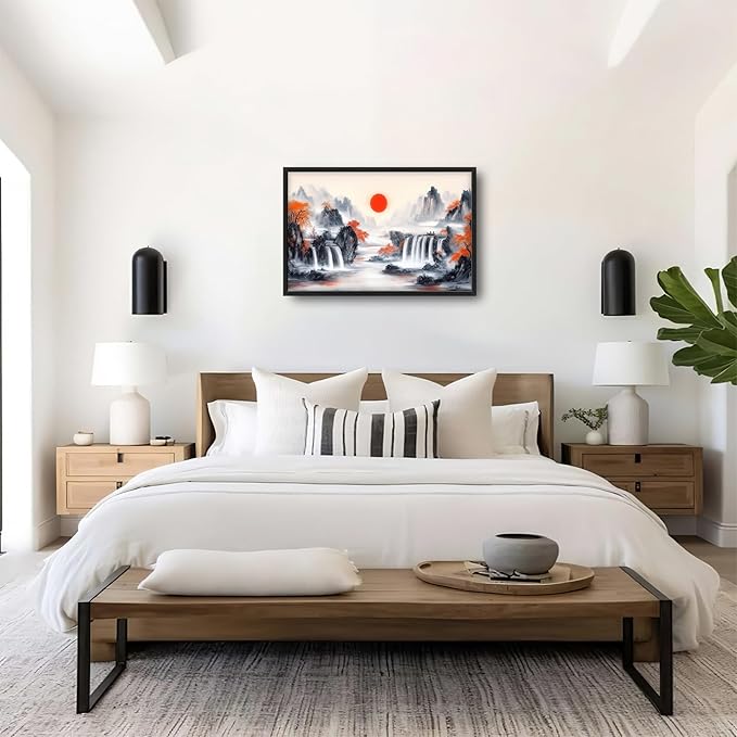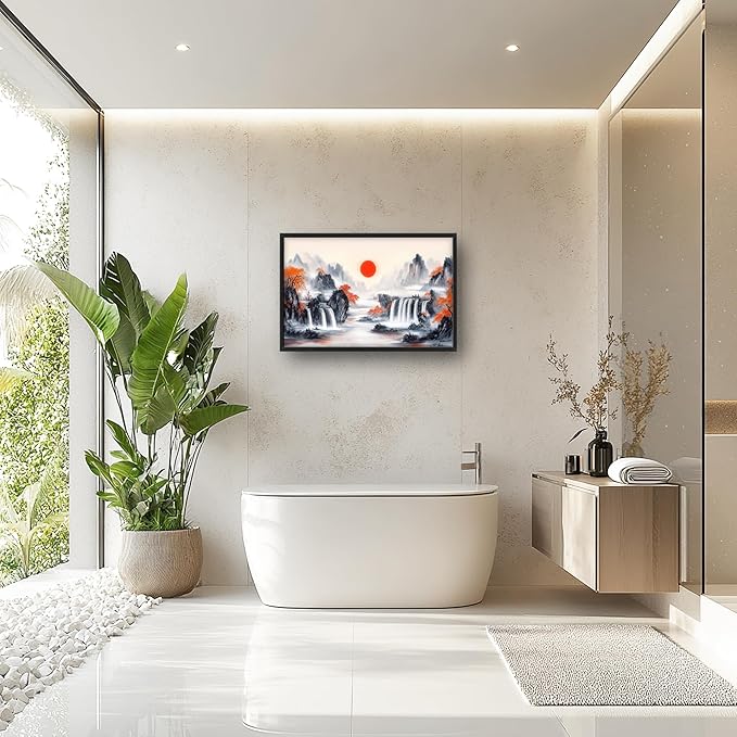 Lovira Japanese Mountain Landscape Large Wall Art Japan Canvas Wall Decor Pictures Prints Painting Framed Artwork for Living Room Bedroom Bathroom Kitchen Office 24"x36"
