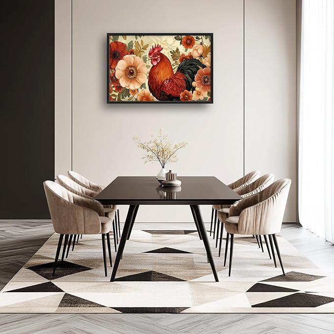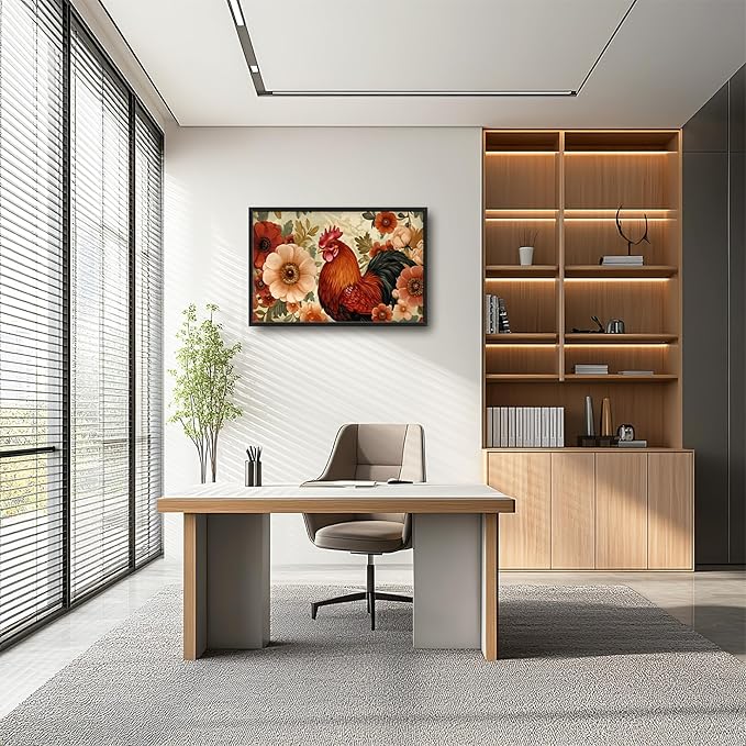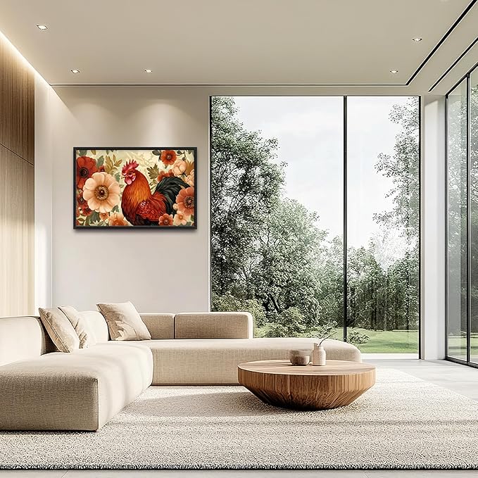 Lovira Farmhouse Rooster Large Wall Art Rustic Country Farm Chicken Floral Canvas Wall Decor Pictures Prints Painting Framed Artwork for Living Room Bedroom Bathroom Kitchen 24"x36"