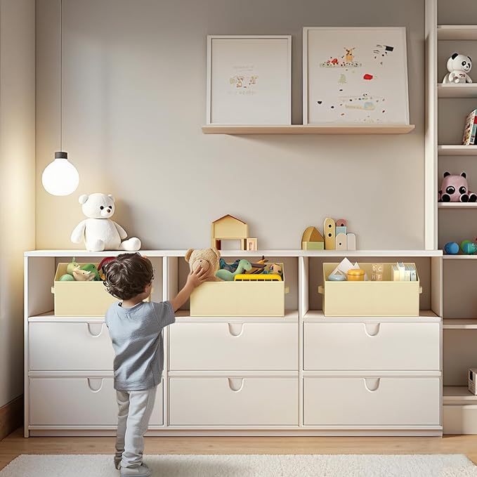 - 【Multipurpose】These closet shelf organizer for organizing towels, winter clothes, toys, magazines, DVDs, office & crafts supplies, etc. these fabric storage bins fits nicely onto shelves, beds, desks in the bathroom, bedroom, or living room