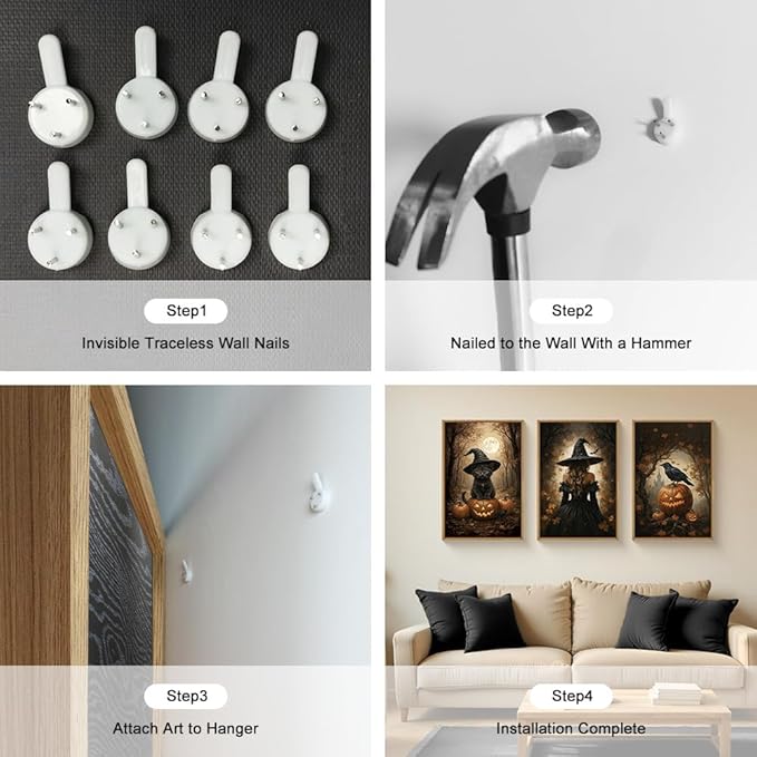 - 【Effortless to Display】The framed black spooky wall art set includes three pieces, each measuring 16×24 inches×3pcs (40×60cm×3pcs). We provide a complete hanging kit, making it easy for you to hang the artwork when it arrives. Simply measure your wall space and effortlessly display the art.