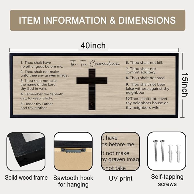 - 【Encouraging Words】The Ten Commandments large hanging wood sign adopt minimalist letters on the white background, showing constant reminder of faith and devotion in any setting and you passion for god, adding a touch of elegant, and classic beauty to your space and giving people a calming feeling.