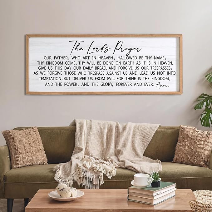 Our Father Prayer Bible Verse Framed Wall Art, 40''×15'' Natural Horizontal Religious Christian Lords Prayer Sign for God Jesus Christ Prayer, Rustic Holy Inspirational Catholic Scripture Decor
