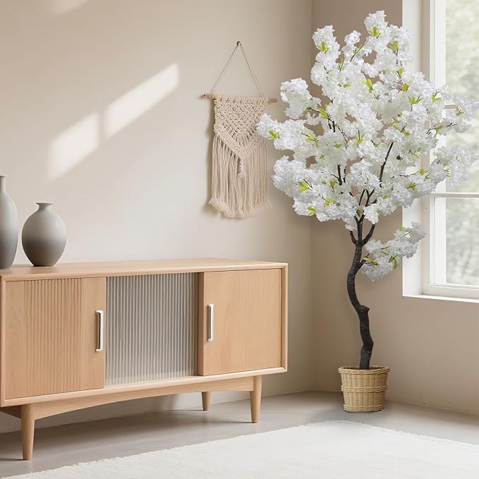 - 【Realistic Looking】There are no trouble of pollen discomfort in the white cherry blossom artificial indoor.The fake cherry blossom creates a natural aesthetic that never withers with extremely realistic details and zero maintenance characteristics. Whether it's lighting up corners of your home or enhancing the texture of commercial spaces, it is an ideal choice that balances environmental protection, economy, and decoration.