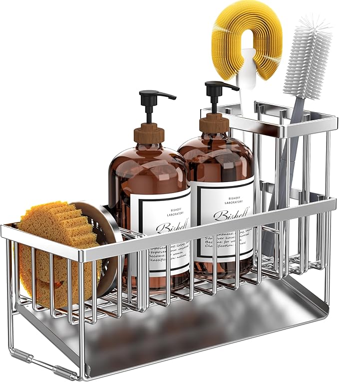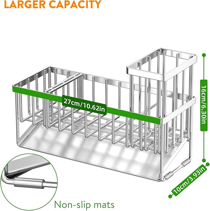 - 【PREMIUM STURDY MATERIAL】 Cisily kitchen sink organizer is made of premium stainless steel which can effectively prevent rust and deformation. And you can clean it easily by rinsing it under a running tap. Take the clutter out of your countertops.