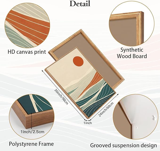 - MATERIAL: Made with love and precision, these prints are printed on canvas, ensuring they are waterproof, UV resistant, and fade proof. The frames are crafted from strong, natural wood, promising longevity and a touch of elegance to any space they adorn.