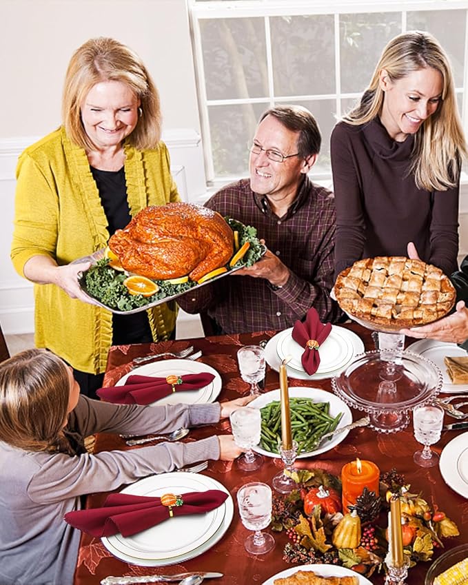 - 【Thanksgiving Napkin Rings】KPOSIYA Pumpkin napkin ring set contains 6 metal napkin holders, These napkin holder will fit most napkins. Small decorations to make your napkin more sophisticated, full of festive atmosphere