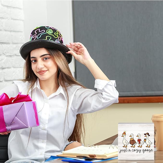 Just a Cozy Goose Fall Decorations for Home Office Funny Silly Goose Fall Decor, Autumn Goose Gifts for Animals Lovers Autumn Holiday Decor for Coffee Bar 5 x 5 inches (Tub 1704)