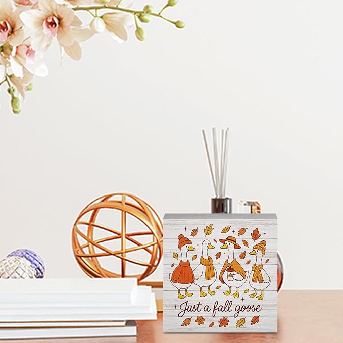 Just a Fall Goose Decorations for Home Office, Funny Silly Goose Fall Decor, Autumn Thanksgiving Holiday Decor Gifts for Gooses Animals Lovers 5 x 5 inches (Tub 1706)